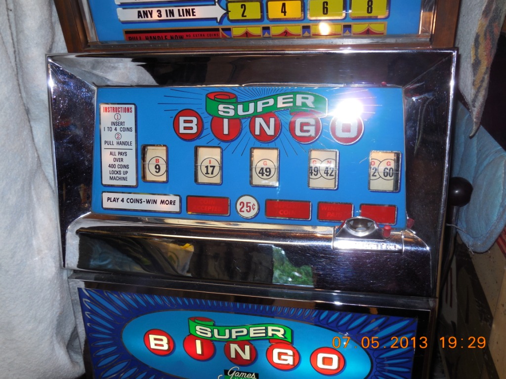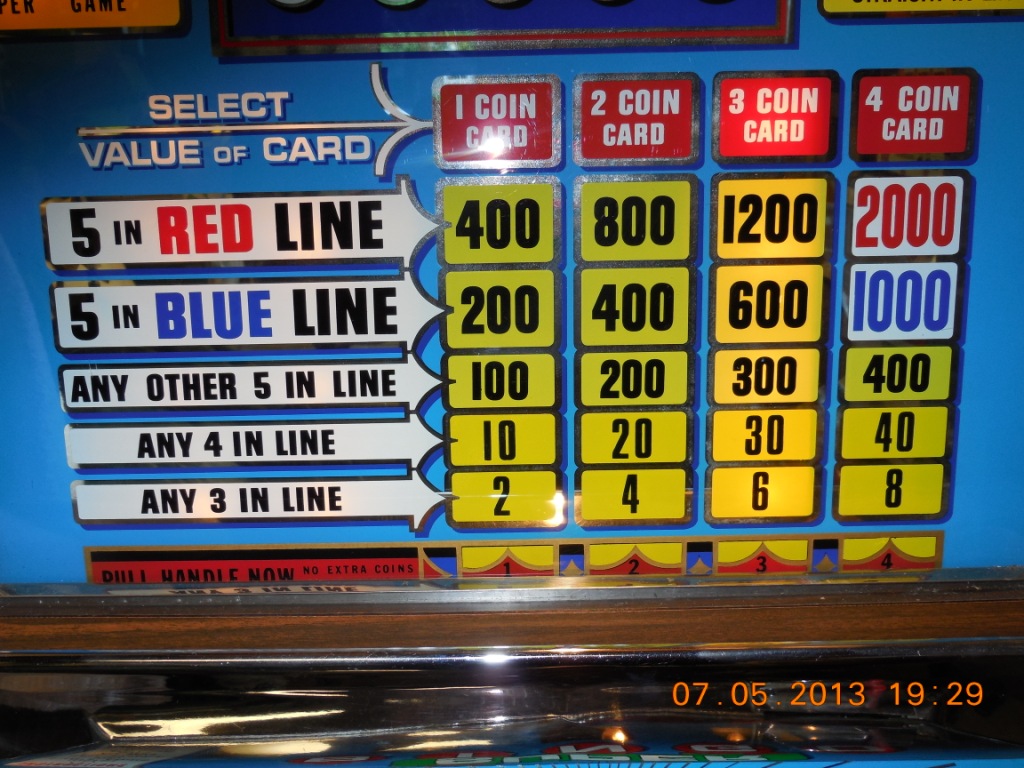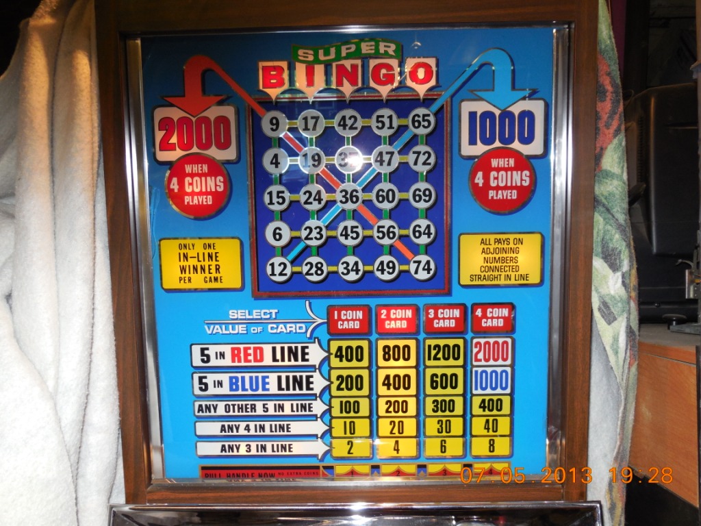 Games of Nevada produced some rather unique machines and they are pretty rare to find one in good working order. This Super Bingo machine may be one of a kind, but regardless there are not many like it to be found. This slot machine is totally Electro-mechanical so they can be repaired without the hassles of finding specialized parts. To get a better view of the pictures, click on the one of the pictures and near the top right hand side is a next arrow, the left is previous and at the bottom left you can click on the X or just hit the ‘ESC‘ key to return to the page.